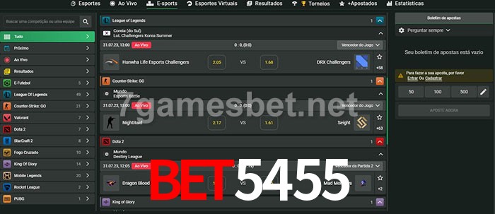 A aposta Bet5455 oferece aos jogadores a experiência mais conveniente de apostas em eSports!